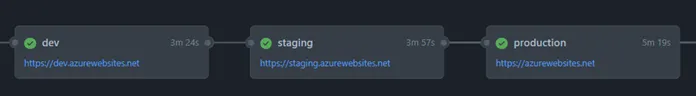 GitHub Actions has an environments feature to describe a deployment target such as dev, staging, or production. By referencing the environment in a job, you can take advantage of protection rules and/or secrets that get scoped to the environment. Some potential use cases include requiring a particular person or team to approve workflow jobs that reference an environment (e.g. manual approval before production deploy), or limiting which branches can deploy to a particular environment. I also like to set the environment URL so it’s easily accessible from the summary page: