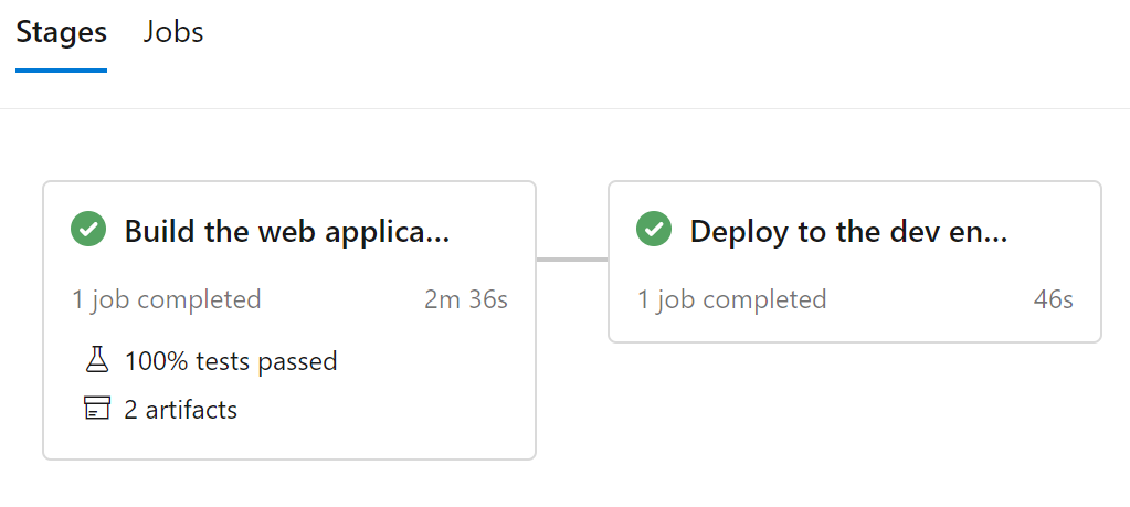 In my Build and Deploy jobs, I’ll change vmImage to runs-on, and dependsOn to needs, to make sure the build job always runs before the deploy: